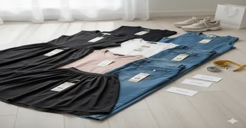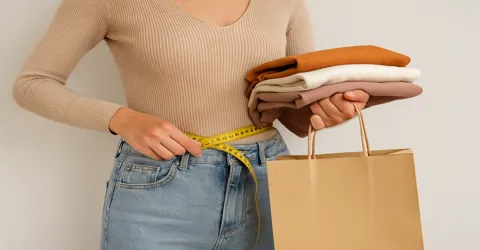 - ابدأ باستخدام شريط قياس وأخذ قياساتك بدقة مثل محيط الصدر، الخصر، الوركين، أو القدم حسب نوع المنتج.